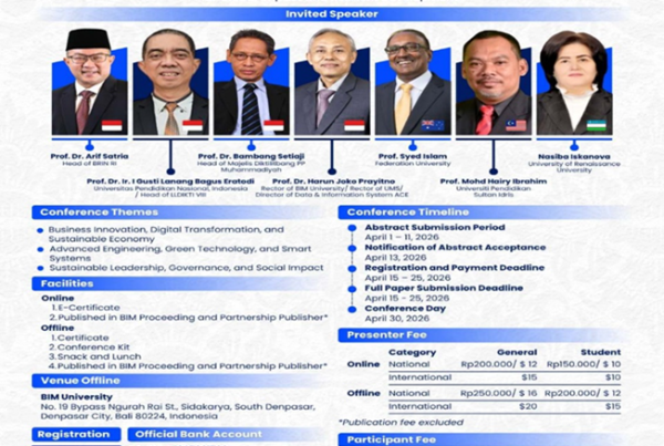 Edutalent.id, Denpasar, 9 April 2026 — Institut Teknologi dan Bisnis Muhammadiyah Bali (ITBM–BIM University) kembali menunjukkan komitmennya dalam mendorong kolaborasi global melalui penyelenggaraan BIM BALI Conference 2026 (Bali International Meeting…